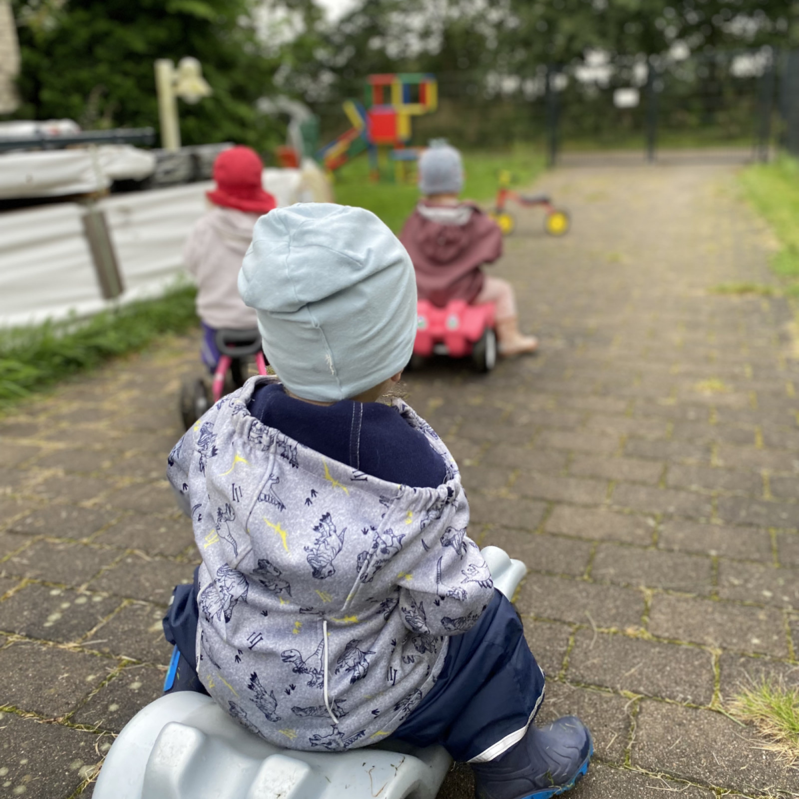 ist unsere Bobby-Car-Rennstrecke, viel Grünfläche, aber auch unsere